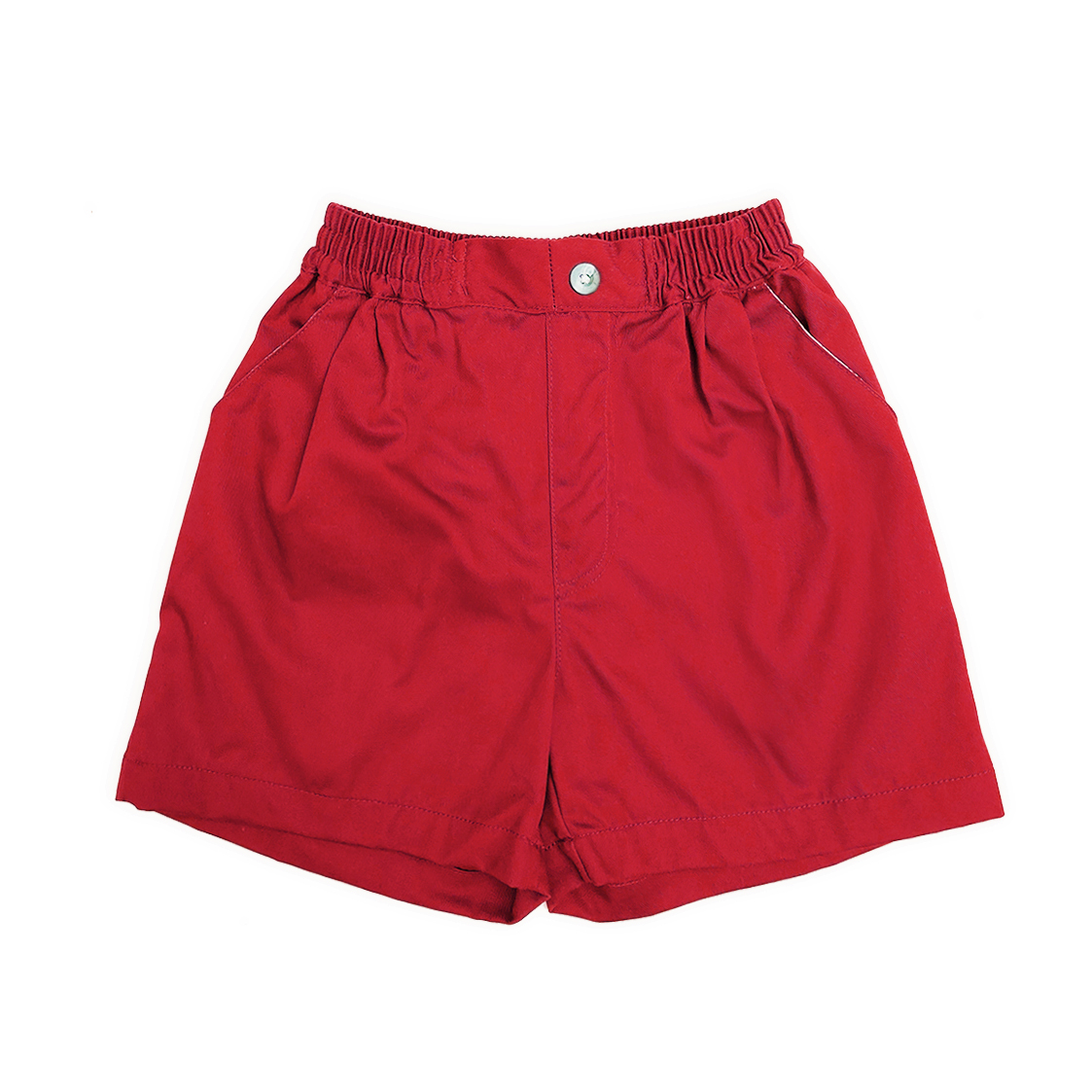 Boy's ODM Spring Summer Polyester Cotton Twill Woven Elastic Waistband Children Red Shorts