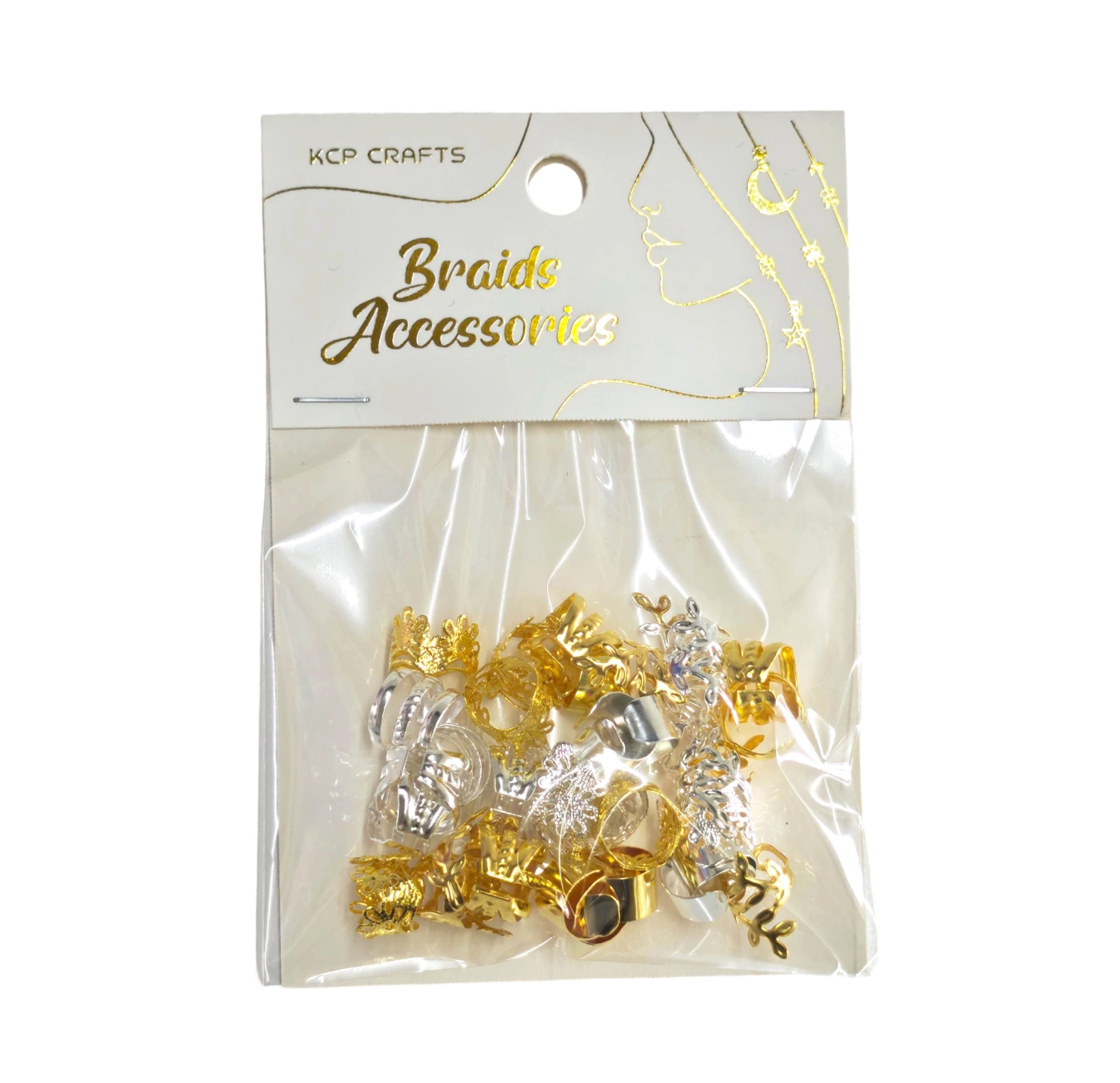This mixed gold and silver braid accessory set features intricate leaf and branch-shaped charms.