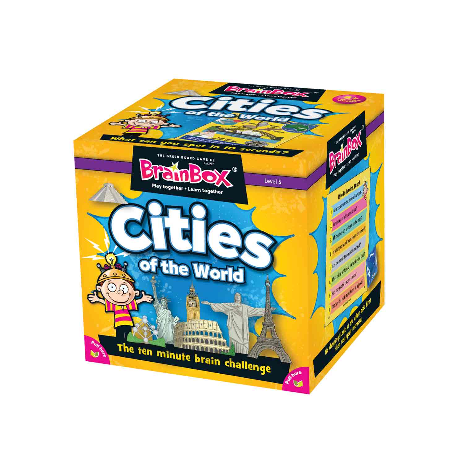 BrainBox Cities is developed for you to play with your family and friends. It will help improve observation and memory skills as well as knowledge about some of the most iconic cities in the world. Each card shows images, foods, people and facts from cities all around the world. In which city could you cross the Bosphorus Bridge linking Europe and Asia? Ride a cable car to Table Mountain? Or visit the Spanish Riding School?