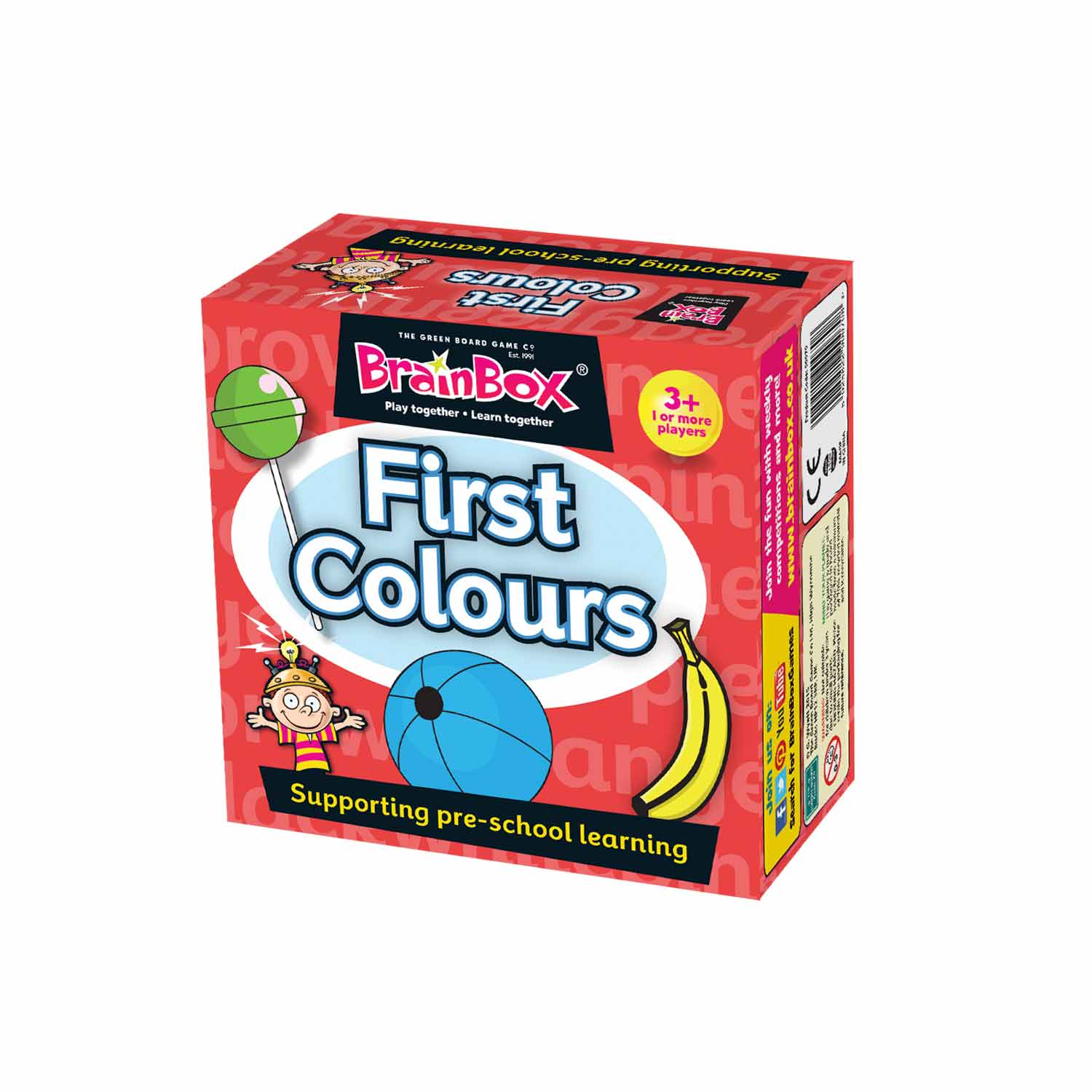 BrainBox First Colours is designed to give pre-school children a head start. Each sturdy double-sided card shows three coloured images on one side and the outline images on the other. As well as the game shown, the cards can also be used by children to talk about the images on the cards, or even tell a story that includes one or more of the images.