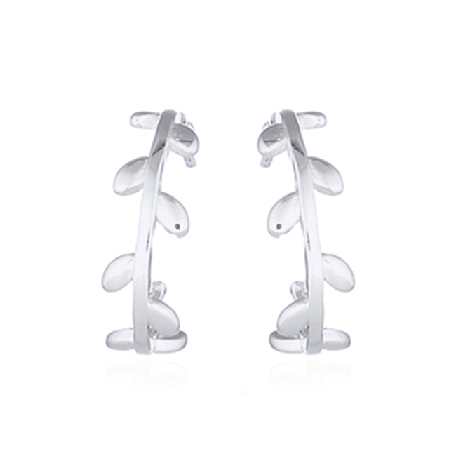 Branch of Silver Ovate Leaves 925 Stud Earrings