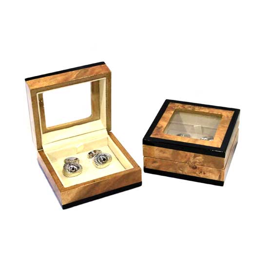 These exquisite brass cufflinks feature shiny polished surfaces. The well-designed cufflinks bring you a unique dressing style. The square packaging box features a window on the top.