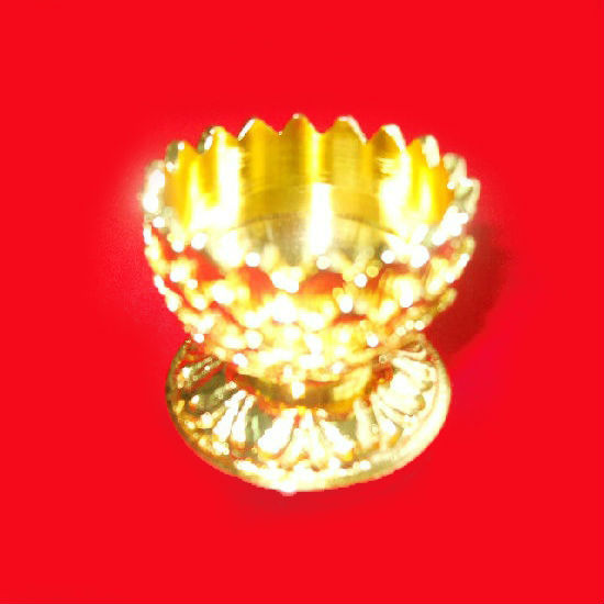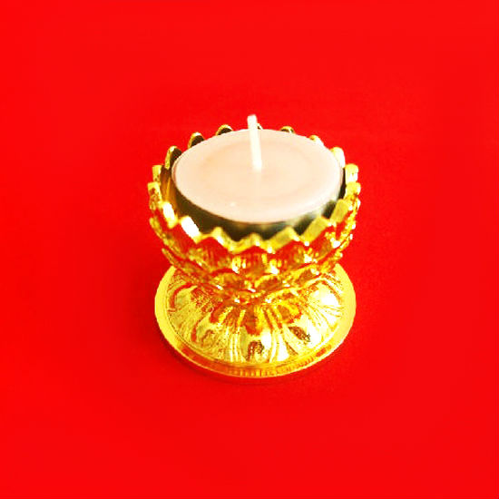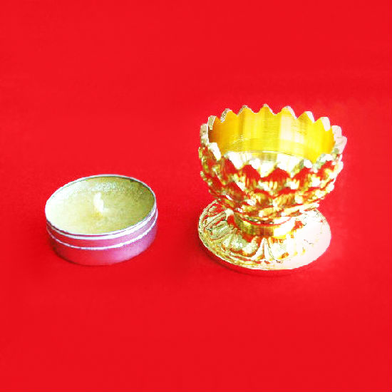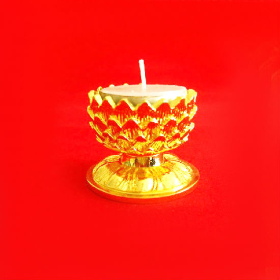 It consists of two parts; the upper part is a lotus-shaped container holding a wax while the lower part is a stand so that the upper lotus cup can fixed onto it to form a whole set.