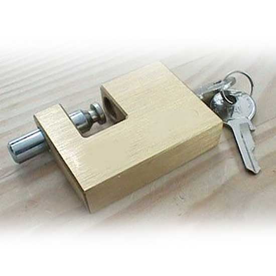 Displayed is a brass padlock that comes in a rectangular shape. Made of brass and steel, this padlock is strong and durable. Multiple keyways are available for this high quality brass padlock.