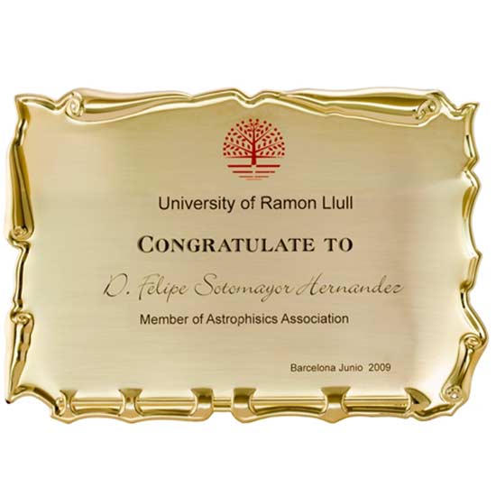 The award plaque is exquisitely designed with a shape of a certificate, which symbolizes the affirmation of an individuals achievement. The lustrous brass-plated surface delivers a sense of sophistication, while providing eternal shine along with the top-grade laser engraving. This brass-plated award plaque displays your accomplishment with sincerity.