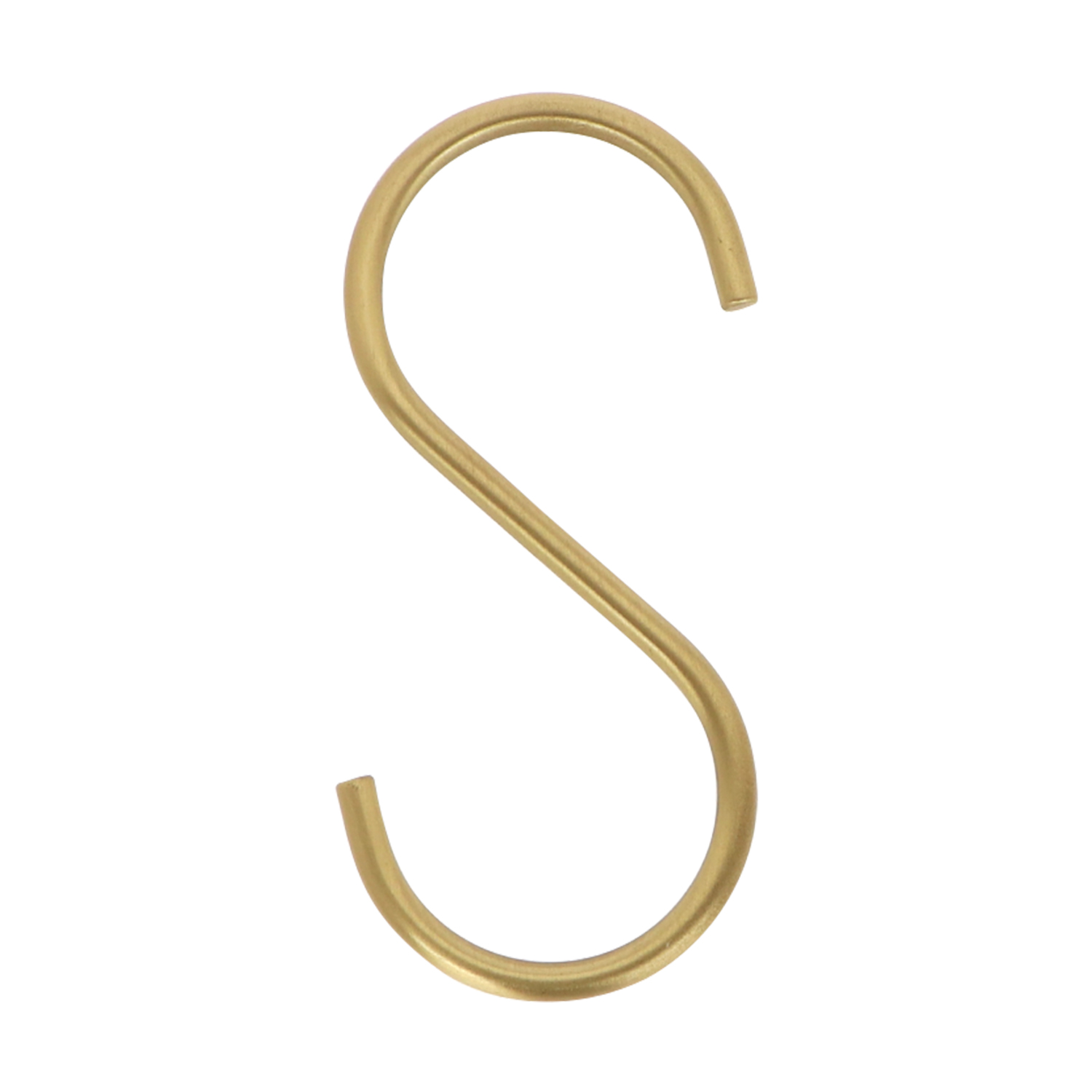 Hang your items in an efficient and space saving way by using this S shaped hook. It is made of brass and is durably constructed to support a heavy load. This brass S hook can work with racks, rails, shelves, etc. and is great for using in the kitchen, wardrobe, garage and more.