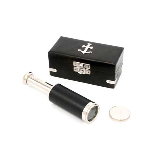 Highlighted here is a brass telescope with a compact and portable design. The wooden packing box is lined with leather, promising enhanced protection. This telescope set is a great gift for men.