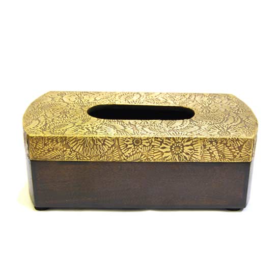 This deluxe tissue box showcases a luxurious style with the classic rectangular shape, elegant floral patterns and polished finish. The solid brass and wooden construction offers enhanced weather resistance and durability. It is professionally designed and manufactured for guaranteed quality.