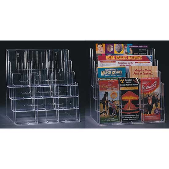 A space-saving four-tier design highlights this tiered shelf to accommodate and categorize your A4-size printed materials. As a flexible display stand, its presentable display of leaflets, brochures and other promotional handouts is bound to impress your visitors and potential customers by having your materials more accessible.