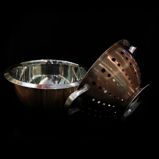 Featured are a bronze bowl and a colander made of stainless steel. The highly-glossy bowl and colander are easy to grip for users. This stainless steel set is surely an ideal addition to any kitchen.