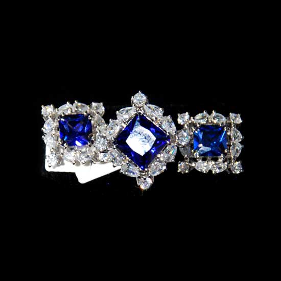 Highlighted here is a silver-plated bronze jewelry set with an indistinctive design. The CZ accents promise lasting shine and sparkles. The lustrous gemstones in blue offer alluring beauty.
