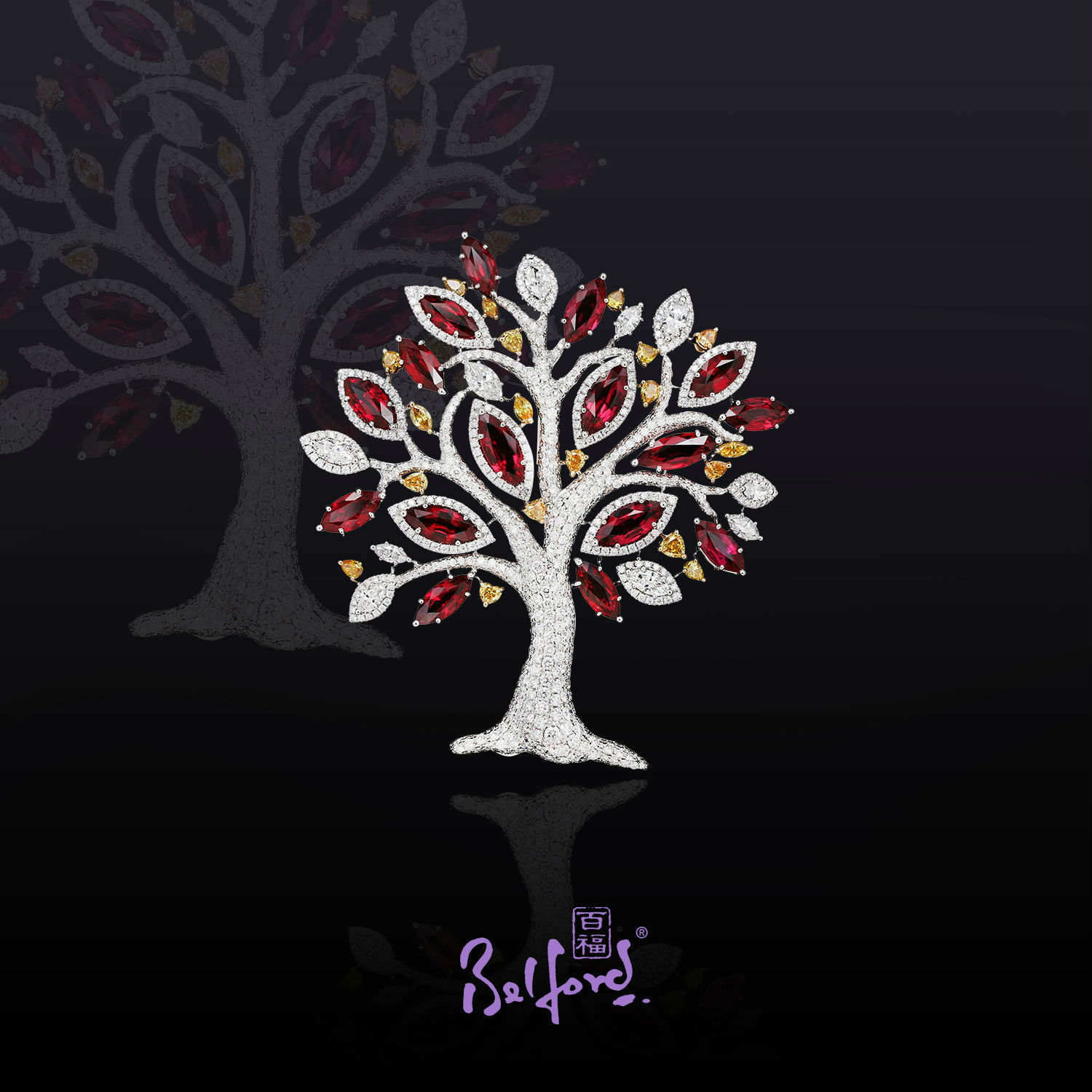 Amp up your ensemble with a dose of unparalleled elegance with this brooch accenting on your look. An epitome of nature and elegance, this brooch displays a graceful tree embellished with striking ruby stones and diamonds set in white gold in a perfect balance. This sparkly addition goes perfectly well on your black blazer for an instant glamor.