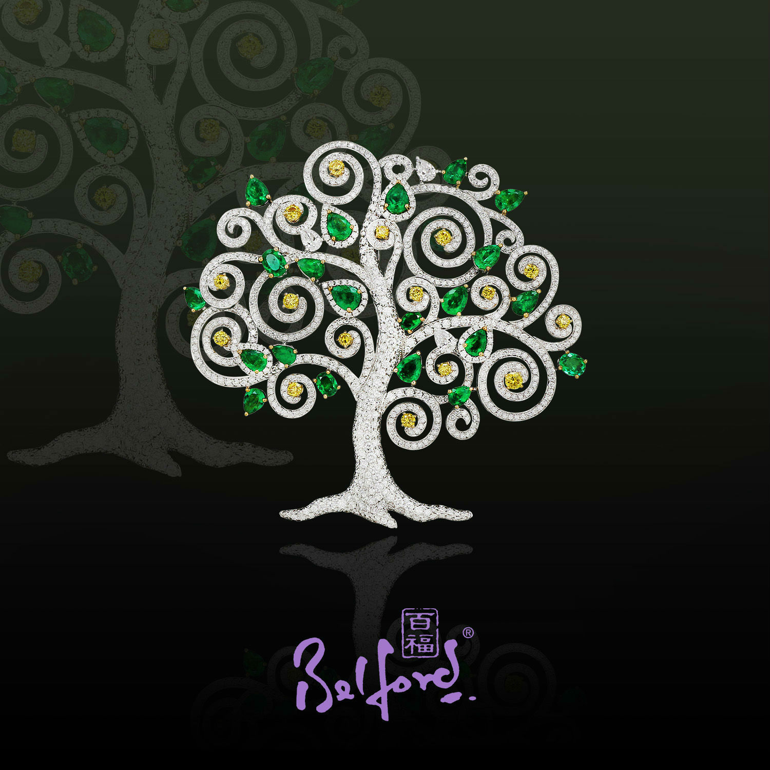 Lend a radiating charm to your look with this magnificent brooch. Ingeniously crafted into a tree silhouette, this brooch blooms with finely crafted emerald stones and diamonds in a yellow shade, effortlessly adding a touch of nature to your ensemble with an extra hint of sparkle. Pin the piece to a sleek black coat as an opulent flourish.