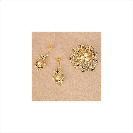 Alloy casting brooch with plastic pearl black-painted and gold-plated