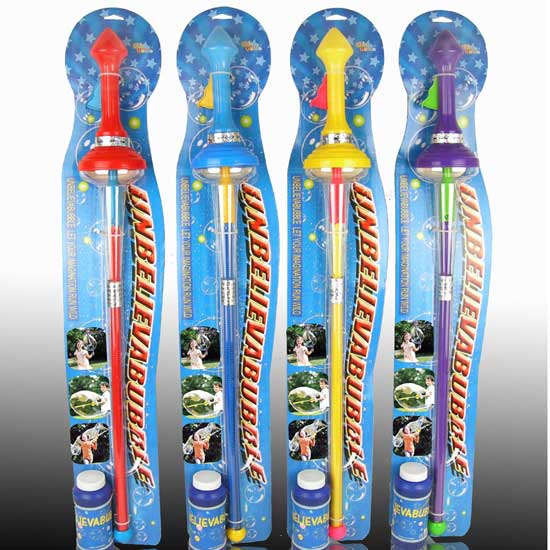 Create your land of fantasy with the featured bubble maker set. It comes with a bottle of liquid and a tube for making bubbles. The toy is suitable for use in outdoor areas such as the park.