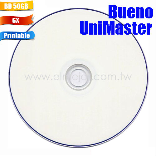 Bueno brand BD-R 25GB 4X/6X White Inkjet Printable / Glossy Printable 50PCS/CAKE BOX (Taiwan)