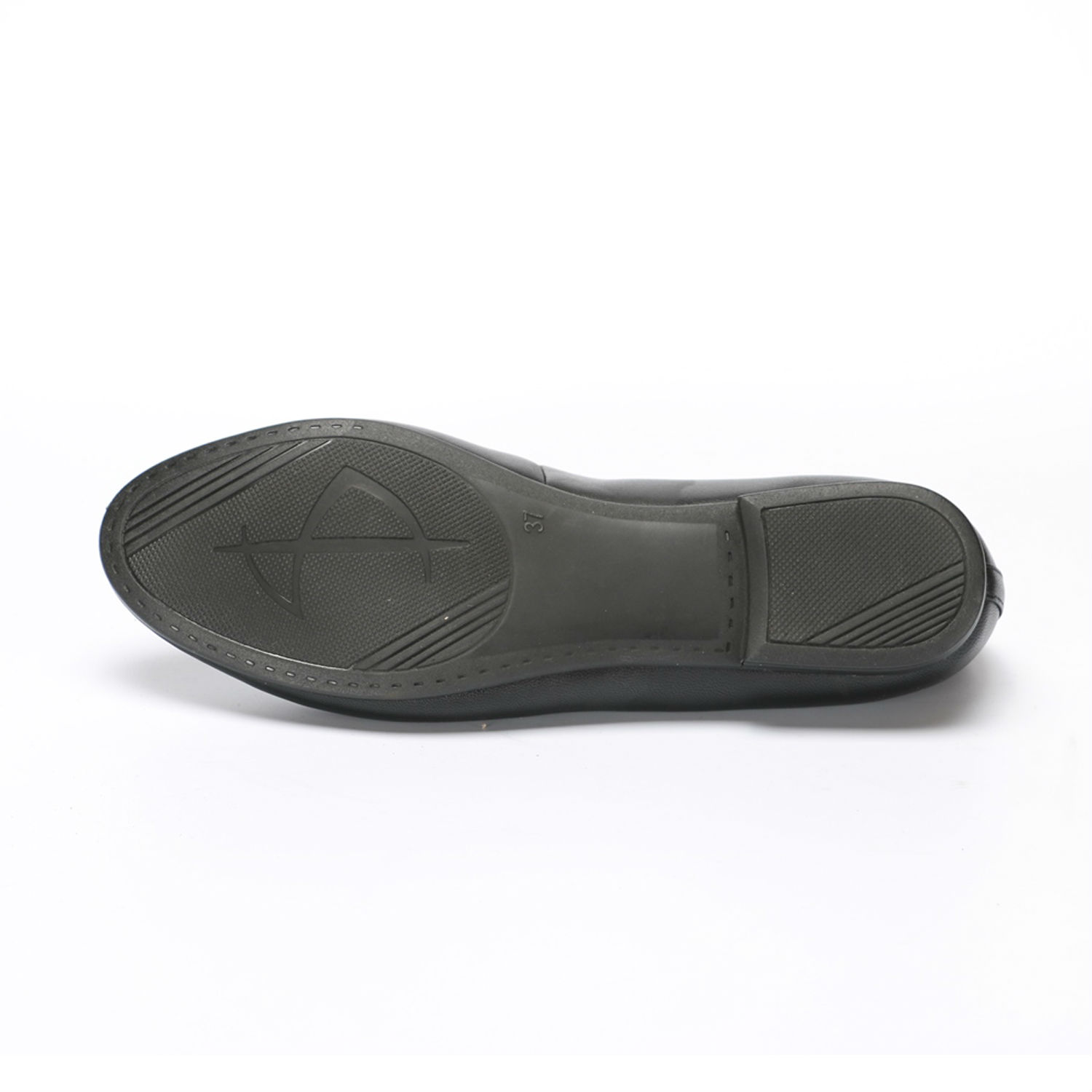 Specially reserved for those finding a perfectly fitted working shoes, these women’s flats deliver pleasant wearing experience without sacrificing style. The slightly pointy toes give a chic twist to the traditional ballerina shoes while the collar piping renders refined detailing to the all-over black design. The durable construction is crafted of various kinds of leather and rubber which promise softness and comfort for everyday wearing.
