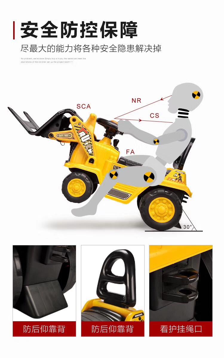Get ready for a truckload of ride-on fun with this bulldozer toy car. Masterly rendered with full functions, the powerful toy car is geared up with a combo of resilient wheels that allows you to travel back and forth the construction site with no fuss and muss, while the sturdy ripper works wonder in transporting heavy concretes between different spots.