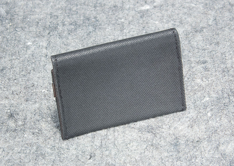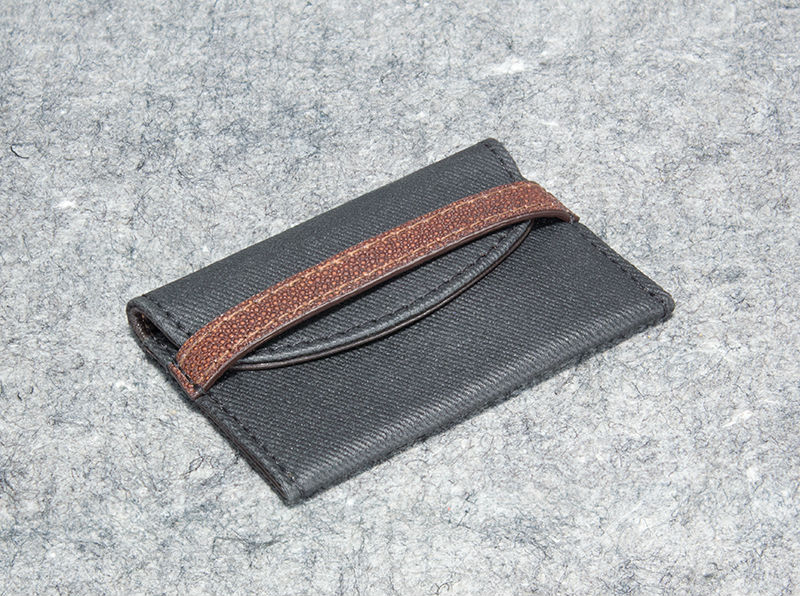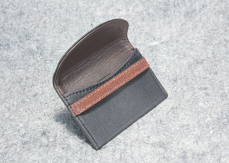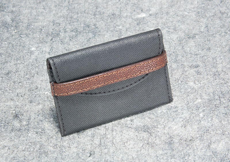 Genuine top of the line Chocolate Stingray leather and Smokey Grey Waxed Canvas business card case.