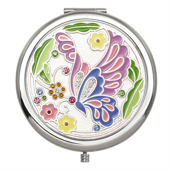 Embossed butterfly & flowers pattern with enamel painted and color stones.