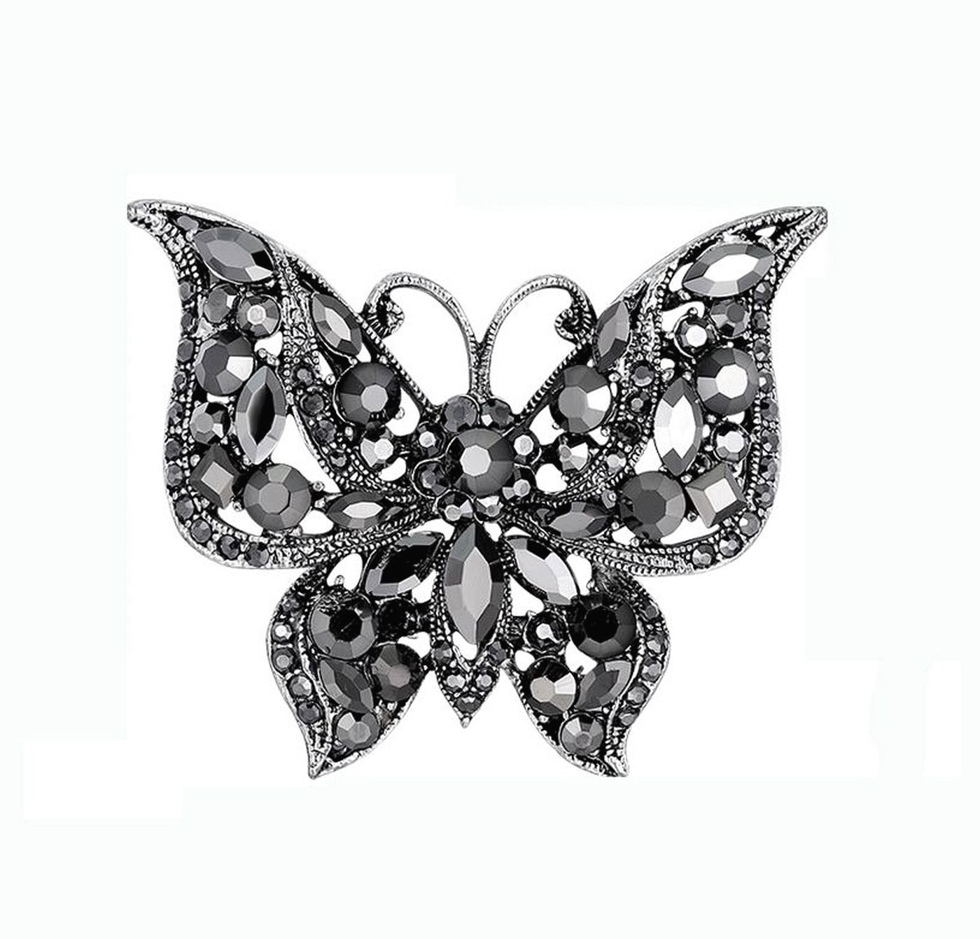 As shown is a high-fashion butterfly style crystals silver plated alloy parts brooch.