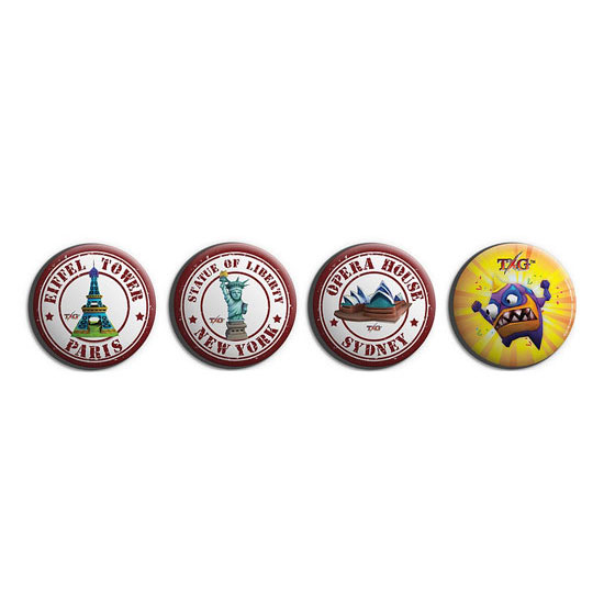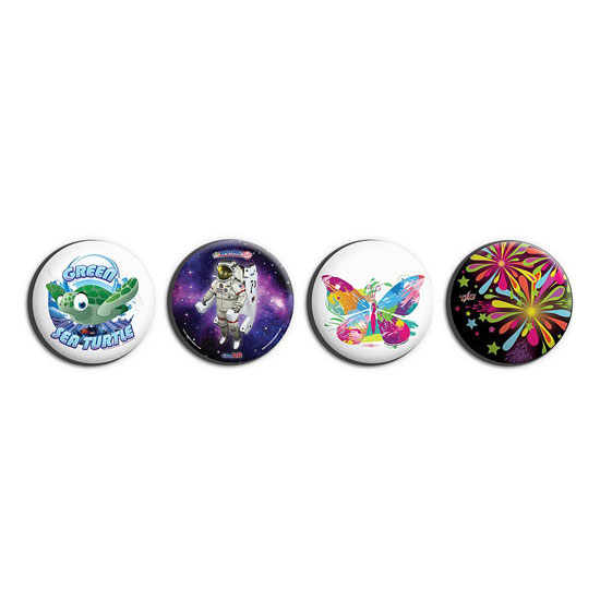 These are AR-enabled button badges in a round shape. With the HOV-powered app on your smart device, you can scan the images of the badges with a smart device's camera, and then a 3D will pops up. The HOV technology merges the real world with the virtual world.