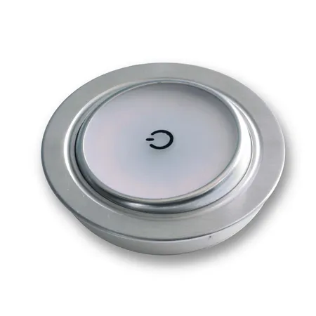 ALLAN LED RECESSED ALUMINUM SPOT LIGHT ,1.7W,15LEDS,SMD2835,12VDC,DIA65MM*15.5MM,CUTTING HOLE :59MM,SWIVEL,ALUMINUM POLISHED,20CM CABLE,4MM ROUND CONNECTORS,WITH TOUCH SWITCH,MILKY GLASS,WITHOUT LENS
