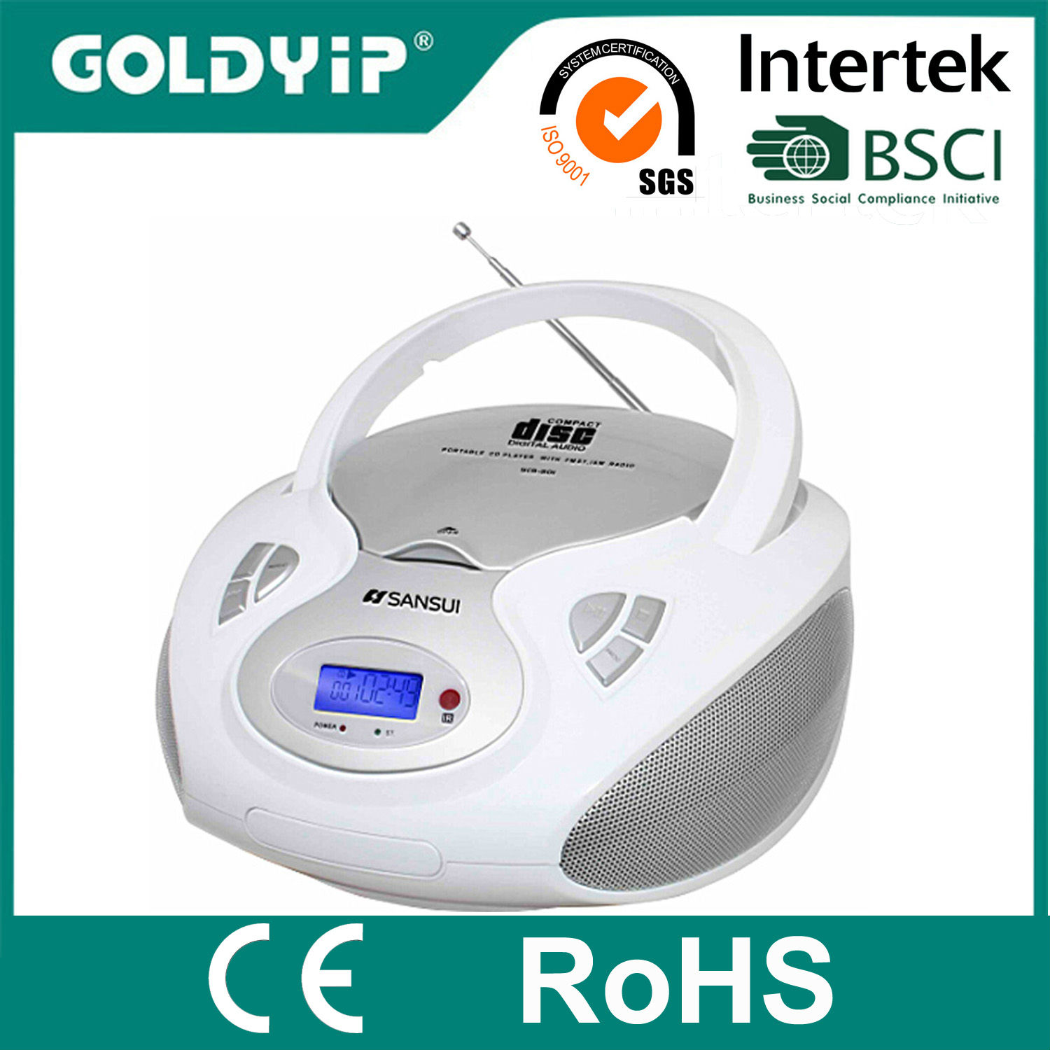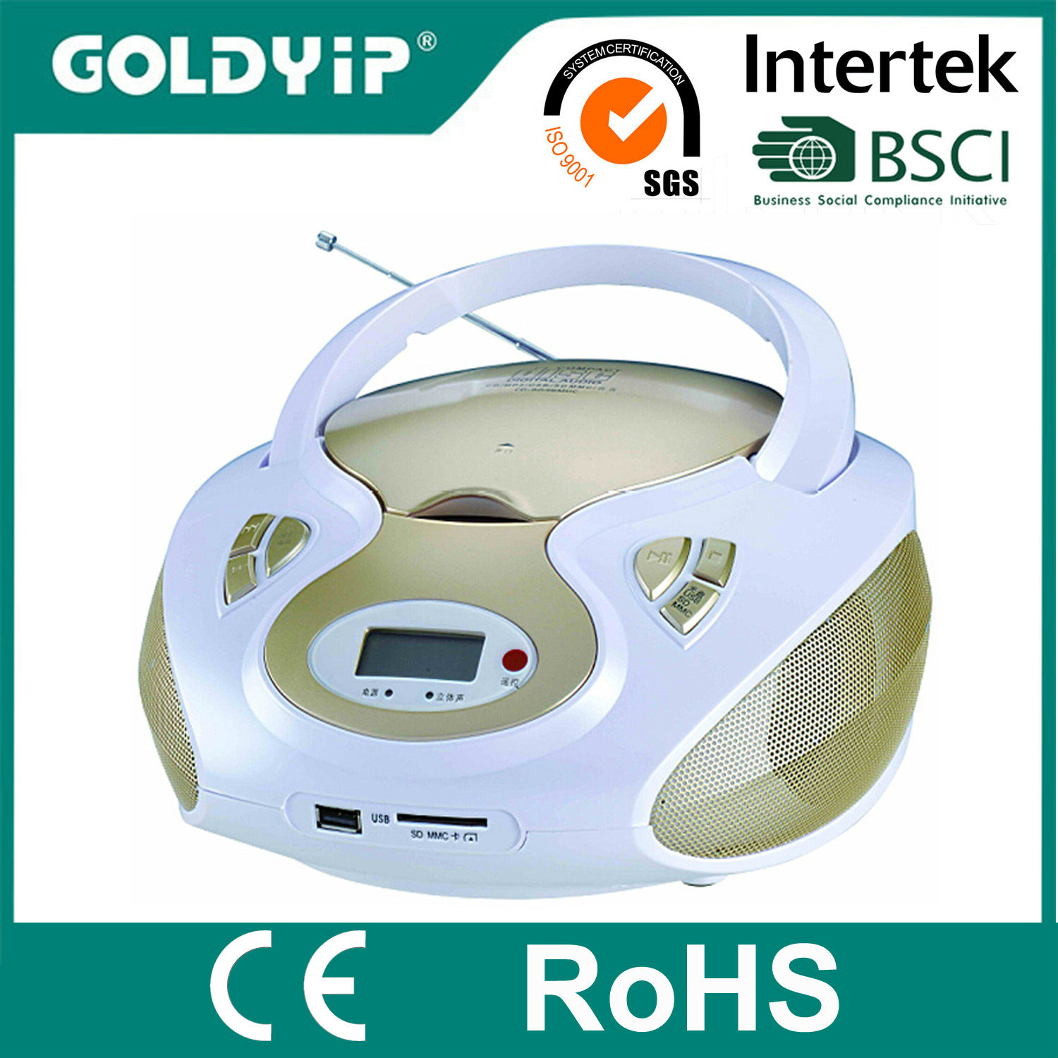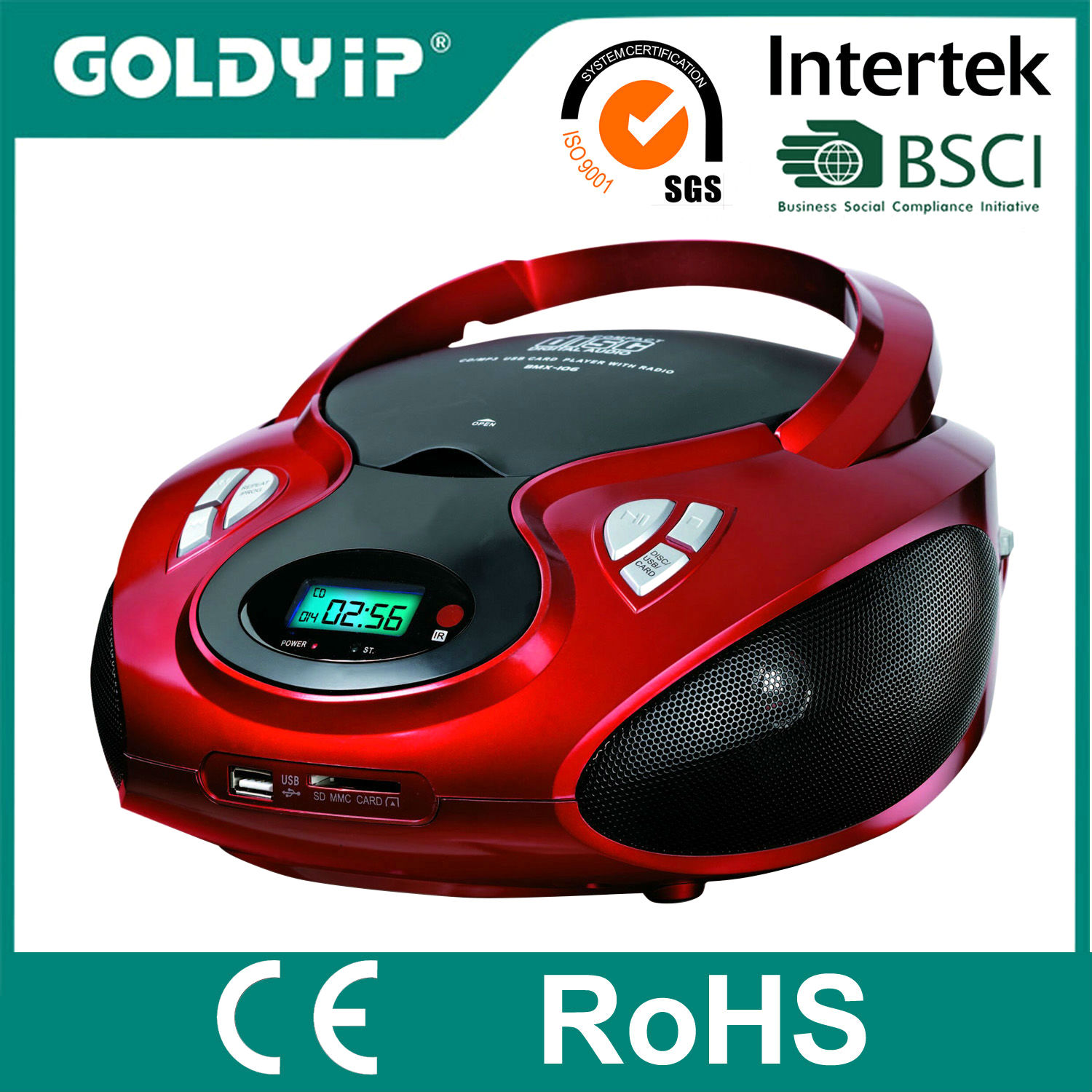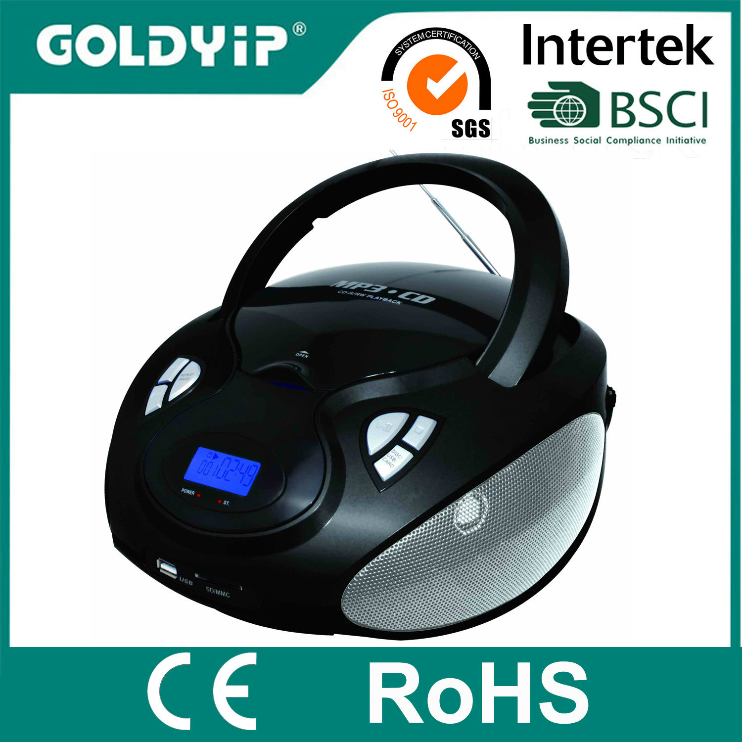 This stylish compact disc (CD) player also plays MP3files. The device can be connected with USB, SD card or MMC card for added convenience. The CD player delivers full and rich stereo sounds for the enjoyment of your ears.