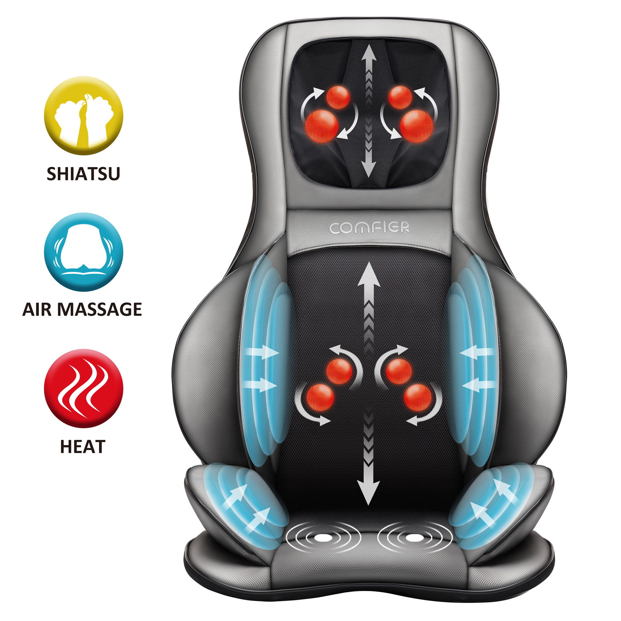 2.2 speed shiatsu massage and rolling function, spot shiatsu massage.