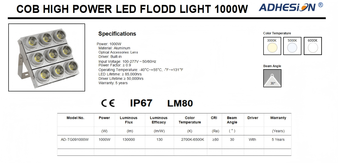 3.Offers outstanding light efficiency with a whole lamp efficiency of 140-150lm/W, making it a suitable replacement for standard LED floodlights of 1500W in the market while providing the same illuminance level.