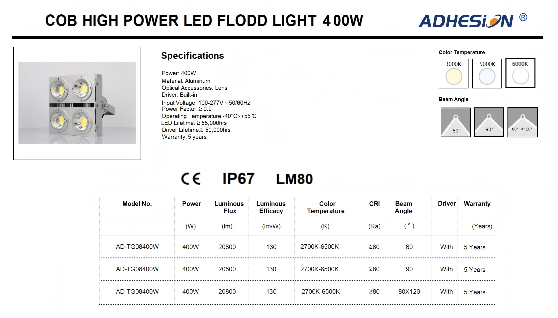 3.Offers outstanding light efficiency with a whole lamp efficiency of 140-150lm/W, making it a suitable replacement for standard LED floodlights of 1500W in the market while providing the same illuminance level.