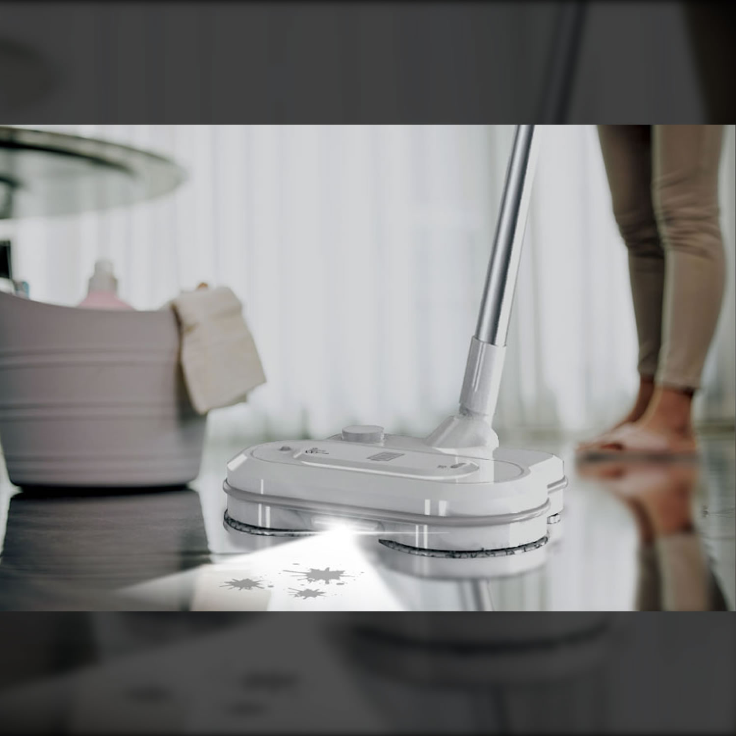 (The long operation time is not contributed from "light weight" but from the special gear transmission design. If an electric mop is too light, it lacks friction and cannot mop clean; if it is too heavy, it consumes power. This model has an appropriate weight, and through a special structural design, the battery can still work continuously for more than 60 minutes after a full charge.)