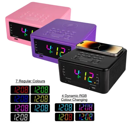 RGB Color Display Alarm Clock Radio with Wireless Charging and Bluetooth Streaming