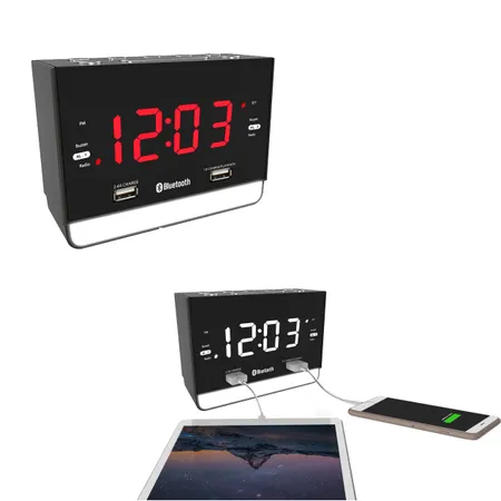 Alarm Clock Radio with Bluetooth, USB Ports for