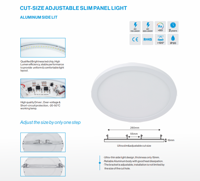 Qualified Brightnessled chip,High Lumen efficiencystable performance to provide uniform&comfortablelight layout.