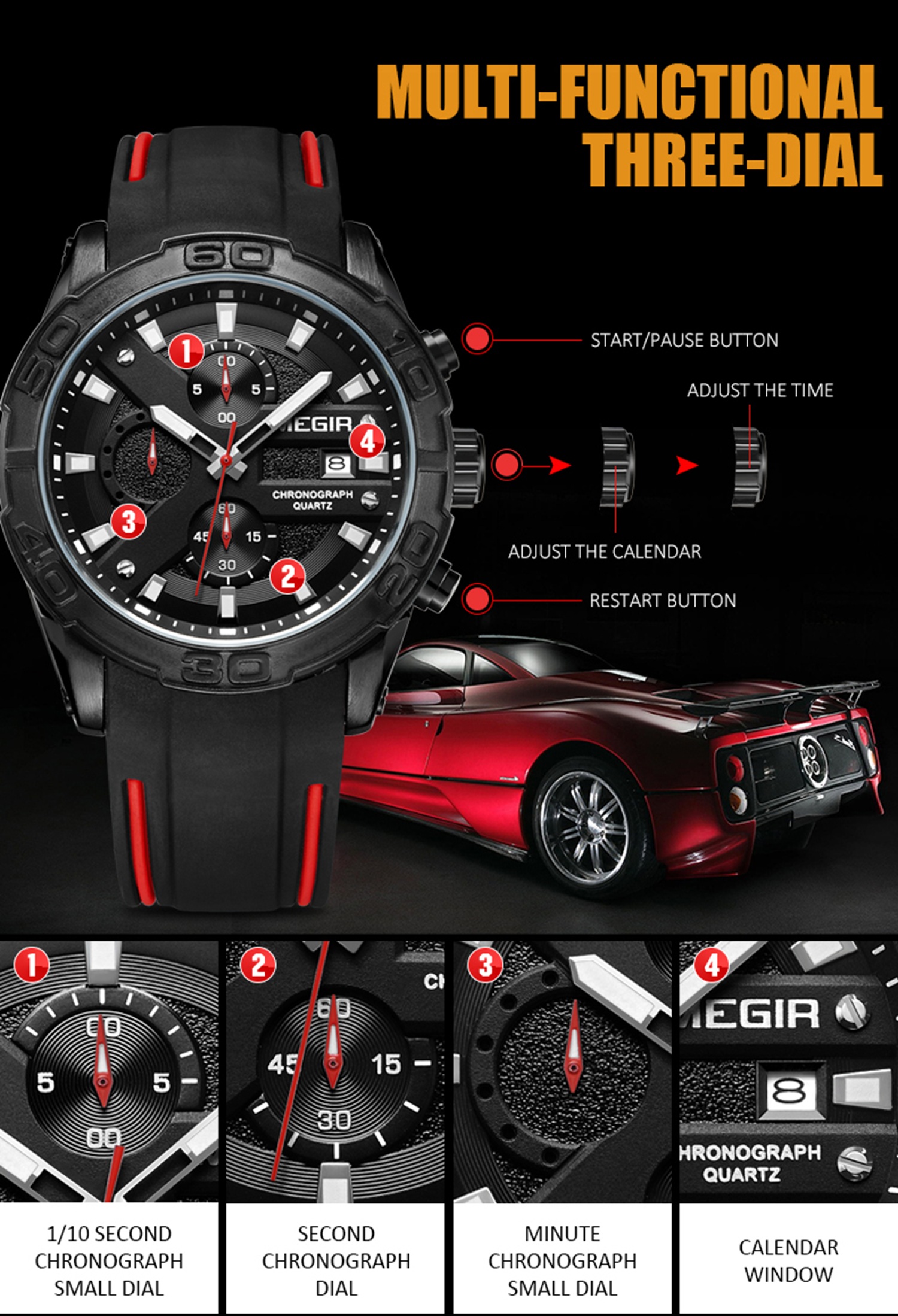 CW-654 Luxury Fashion Chronograph Waterproof Analog Sports Watch Relogio Masculinos for Men