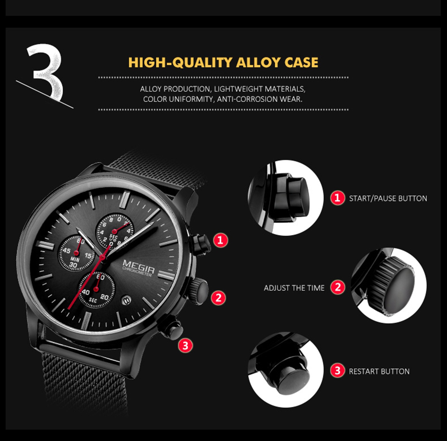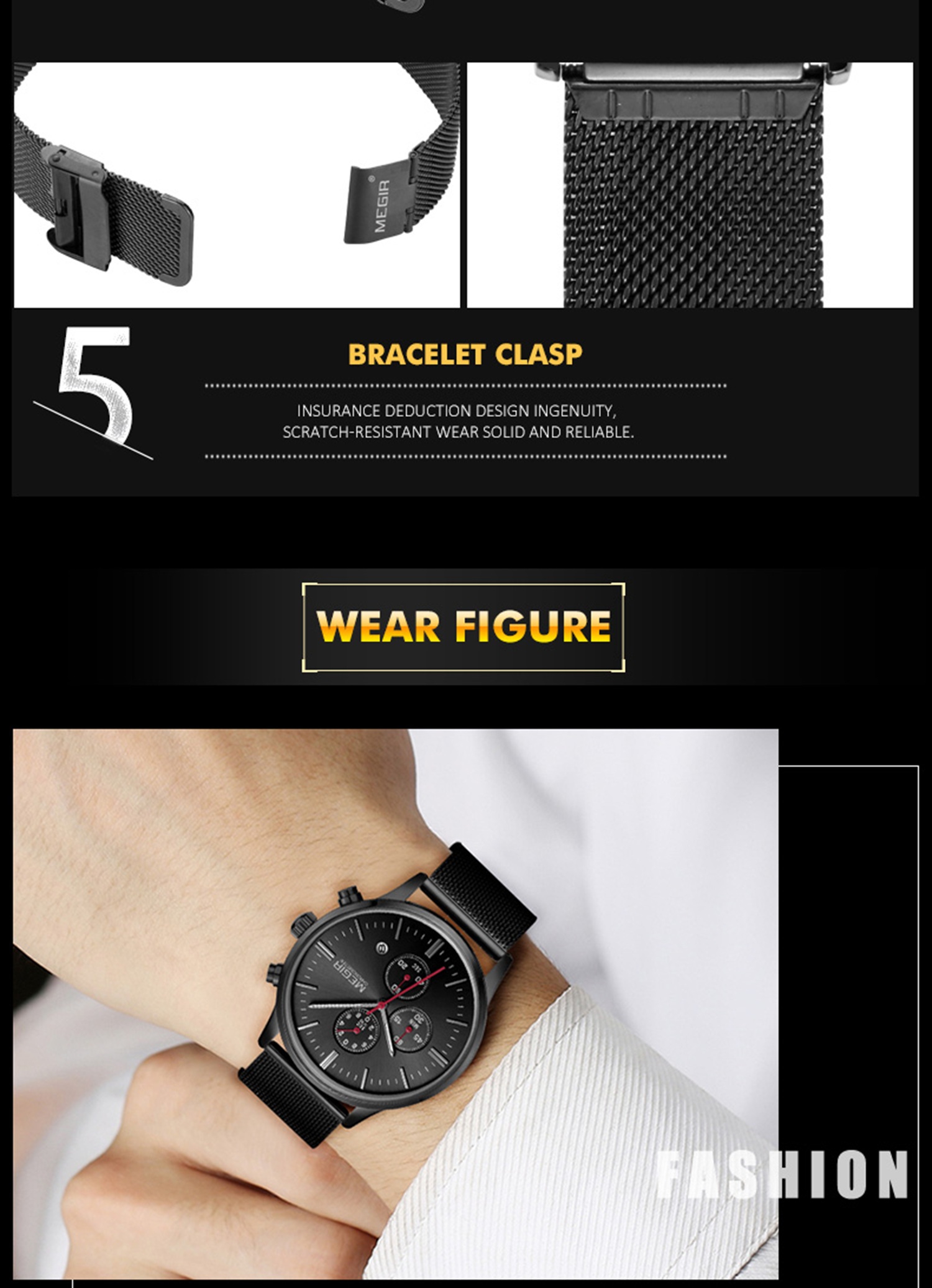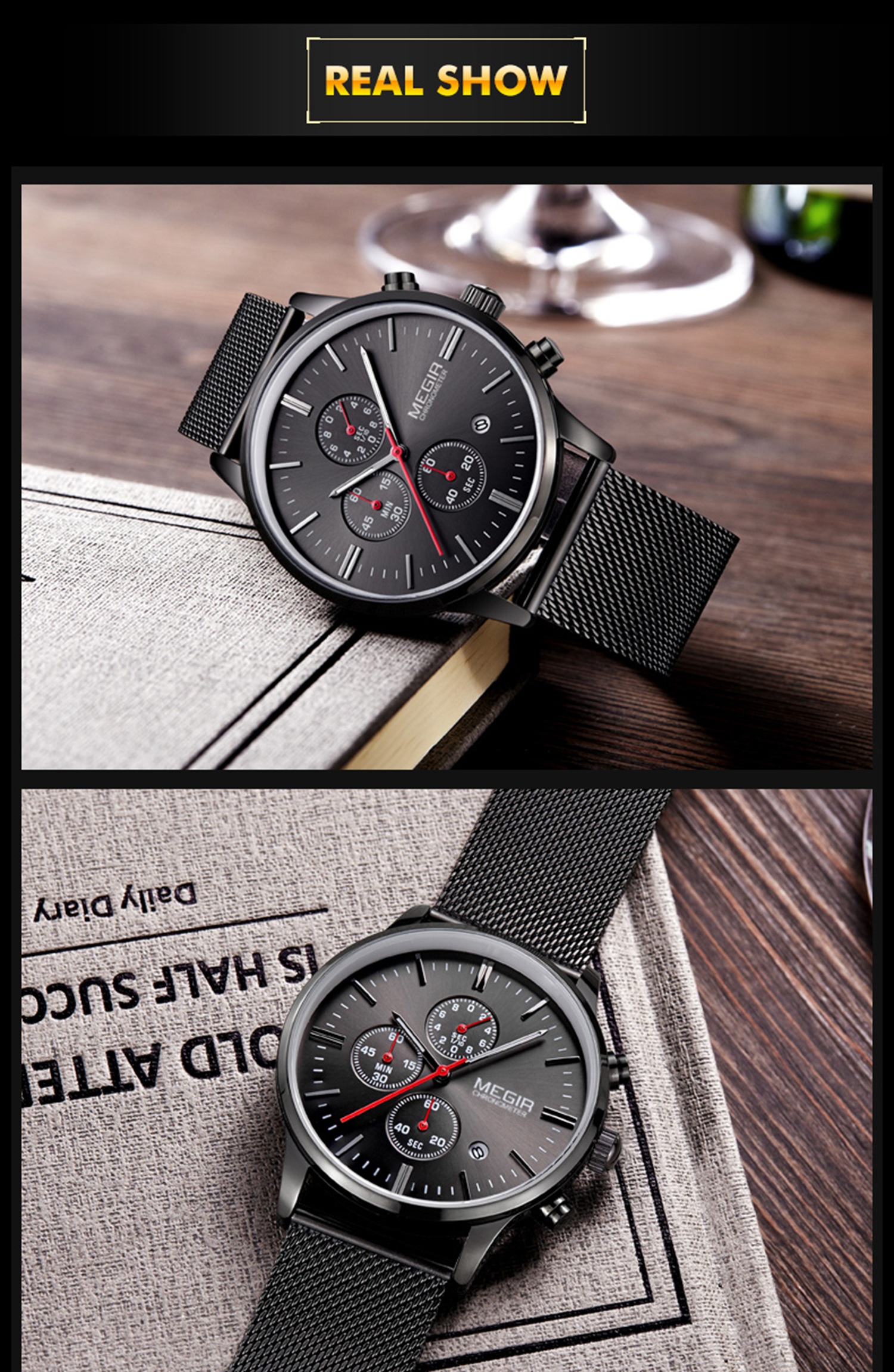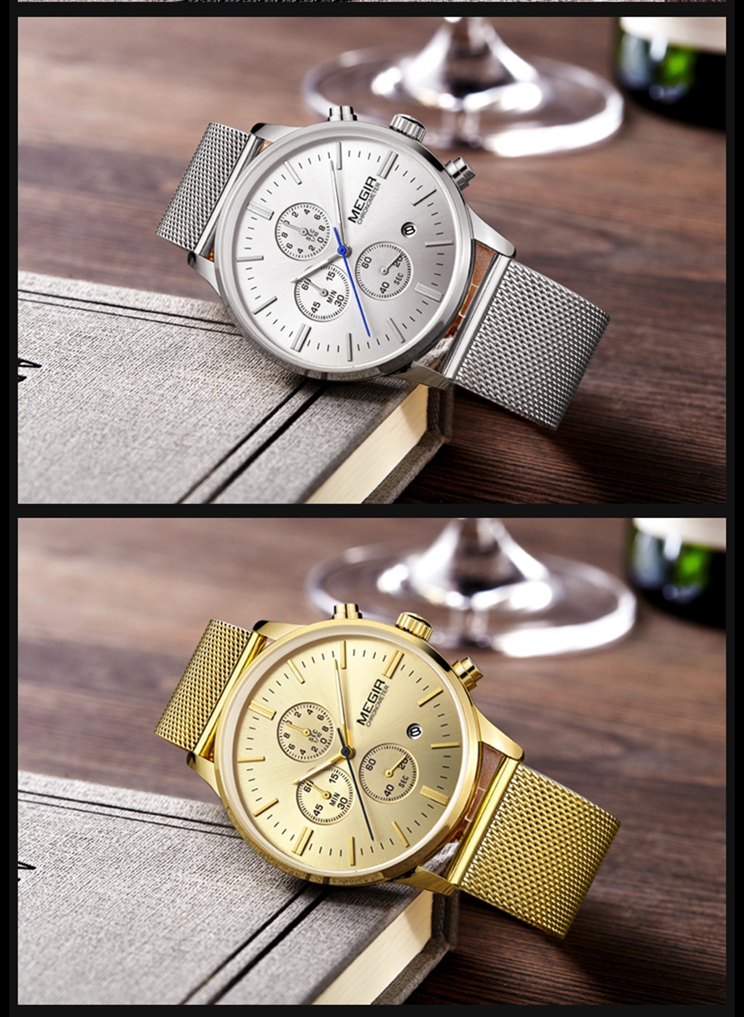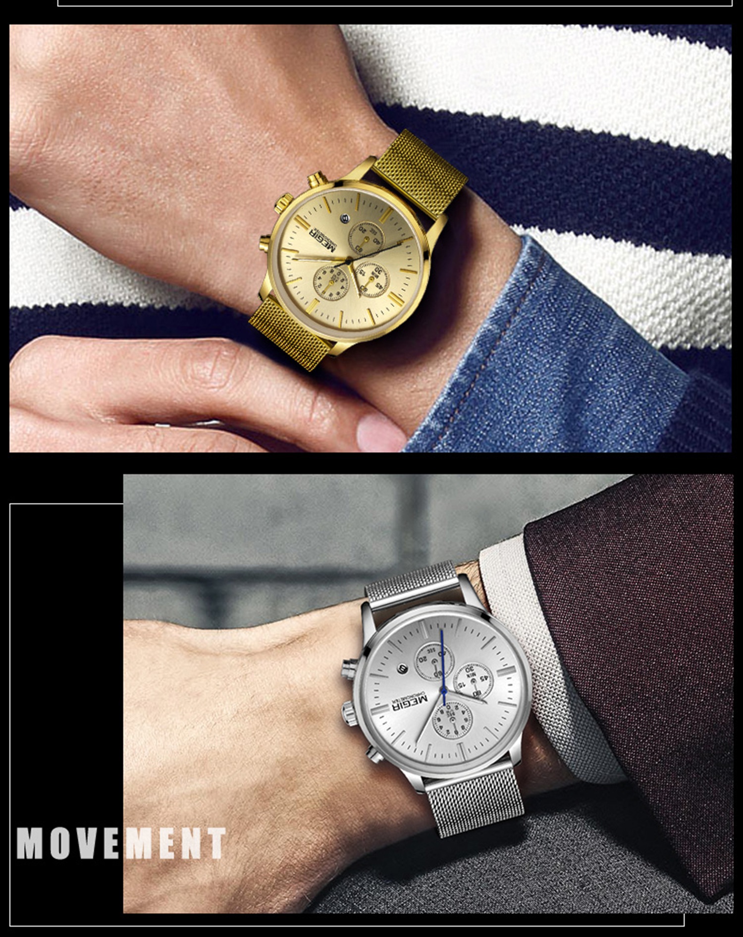 CW-675 Fashion Men's Business Casual Luminous Dress Stainless Steel Watch Quartz Watches for Men