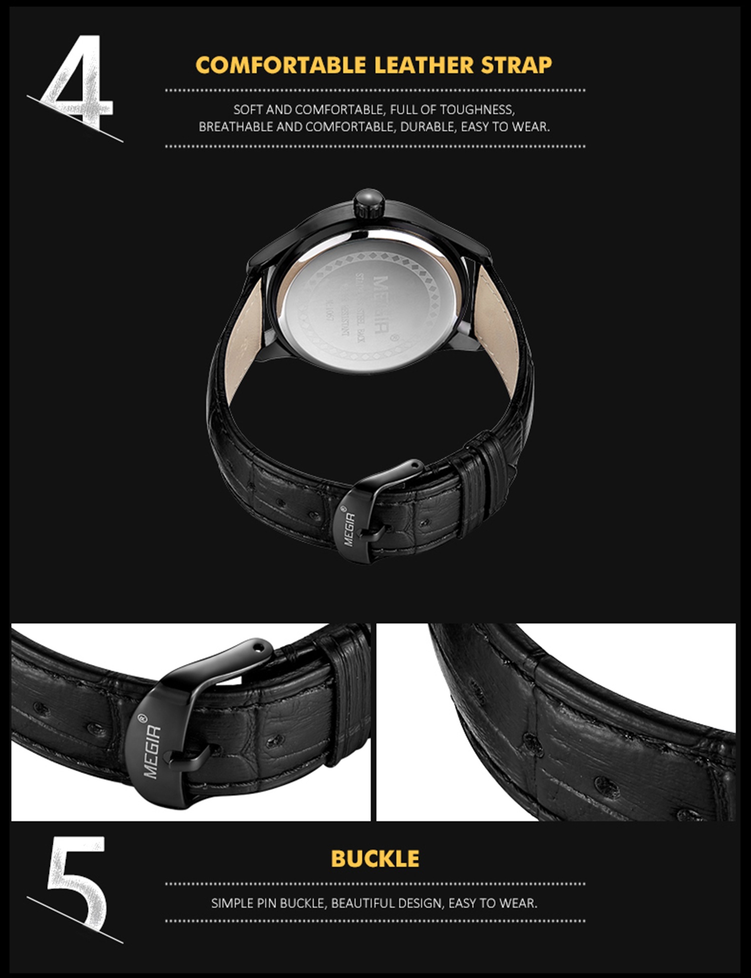 CW-680 Genuine Leather Auto Date Japan Quartz Waterproof Men's Casual Relojes Sport Wrist Watch