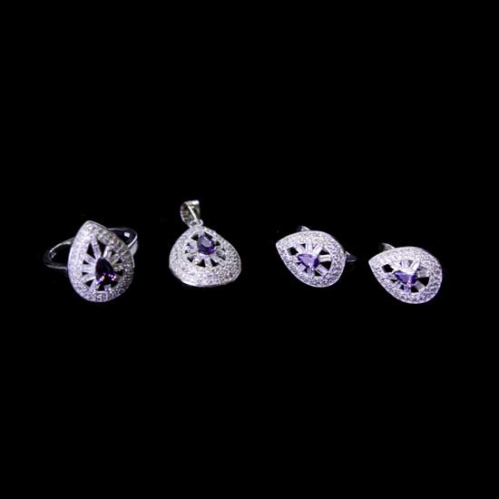 This CZ stone jewelry set comes with a stylish and graceful appearance. The elegant pieces of jewelry have the shapes of water drops. Wear the well-designed set for a more attractive dressing style.