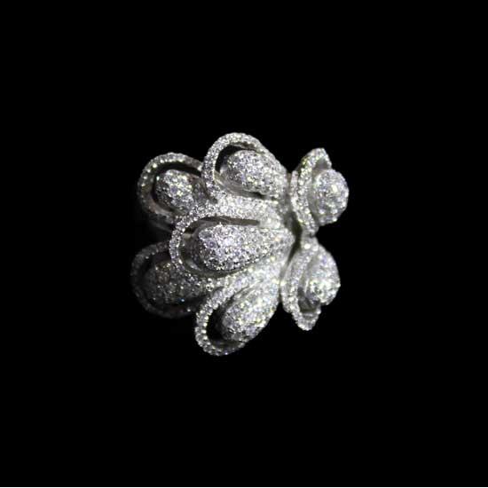 This CZ stone silver ring features a vivid flower design. The ring is micro-paved with twinkling white CZ stones. The jewelry makes a wonderful addition to any lady's jewelry box.