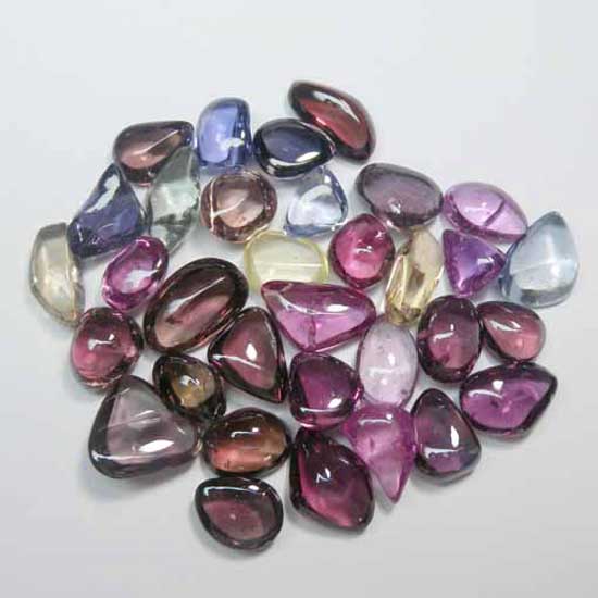 As shown is a beautiful collection of natural sapphires. The sapphires are polished into a cabochon shape for further processing. The fancy colors of the sapphires offer flexible uses in jewelry making.