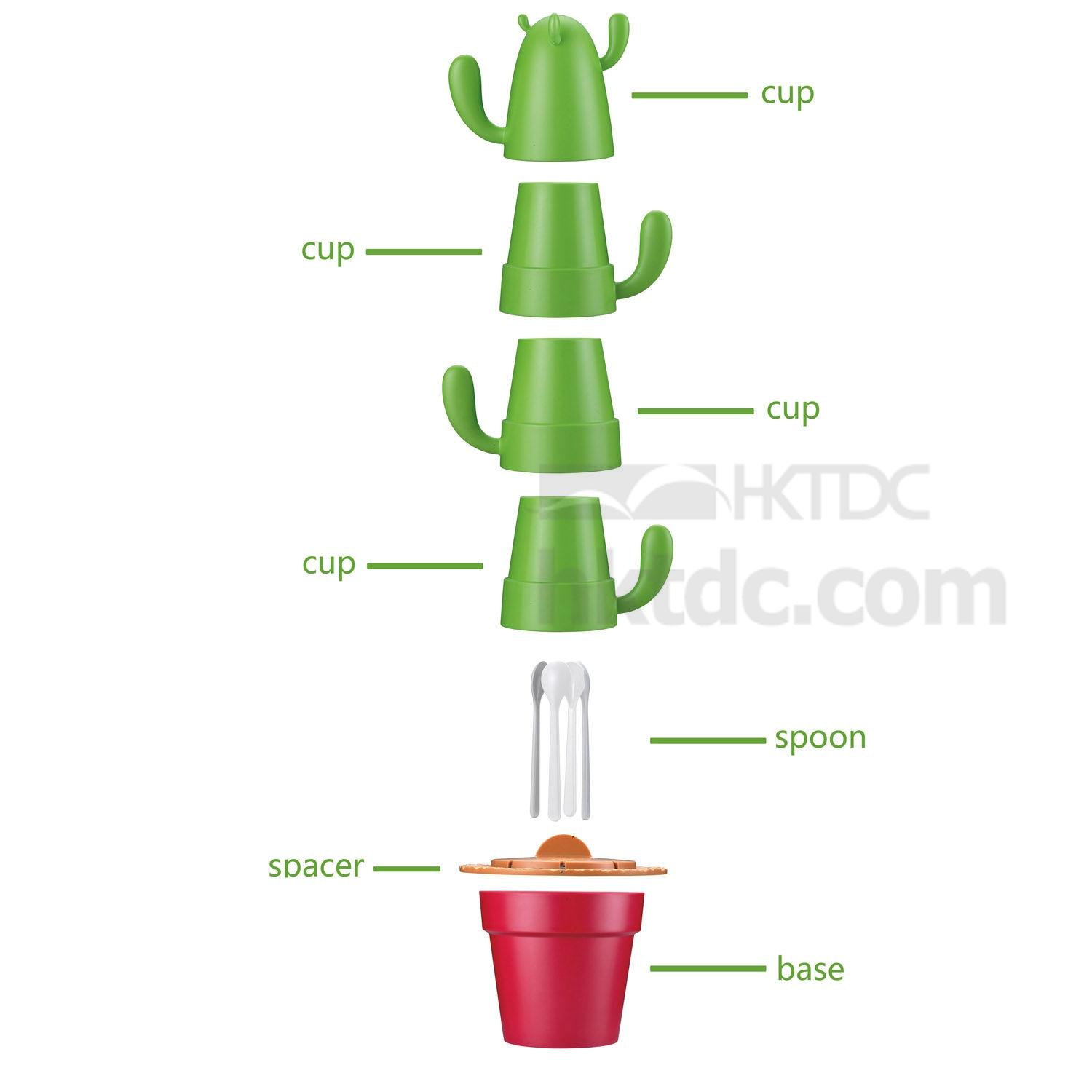 Material: Cups-PLA; Spoon-melamine; Base-ABS