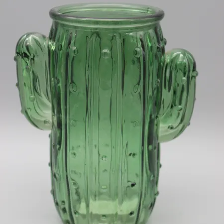 This is a uniquely designed glass jar shaped like a cactus. The mug is crafted from high - quality green - tinted glass, giving it a vibrant and refreshing appearance. Its cactus - inspired form features two "arms" that serve as handles, adding both functionality and an element of fun. The surface is textured with raised dots and ridges, mimicking the look of a real cactus, which not only enhances its aesthetic appeal but also provides a better grip.