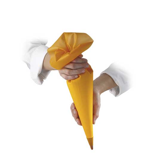 This is a cake decorator in allover gold. It is washable and can be used repeatedly. This refined piece is an essential tool for any pastry chef.