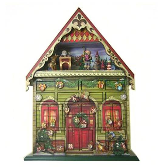 This Christmas calendar house can plays pleasant music. It is designed with 24 numbered doors with hidden small surprises for each day of countdown to Christmas.