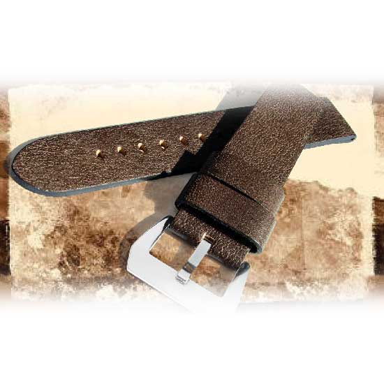This pictured watch strap is made of durable calf leather. It comes with a buckle closure for convenient use. Featuring a mocha brown hue, it goes great with assorted watch cases.