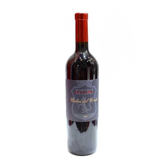 This Calice del Conte 2005 originates from Tuscany, Italy. Made from Cabernet Sauvignon and Merlot, the refined red wine displays an enticing perfume and elegant resonance on the palate. This table wine goes well with rib-eye steaks and hard cheeses.