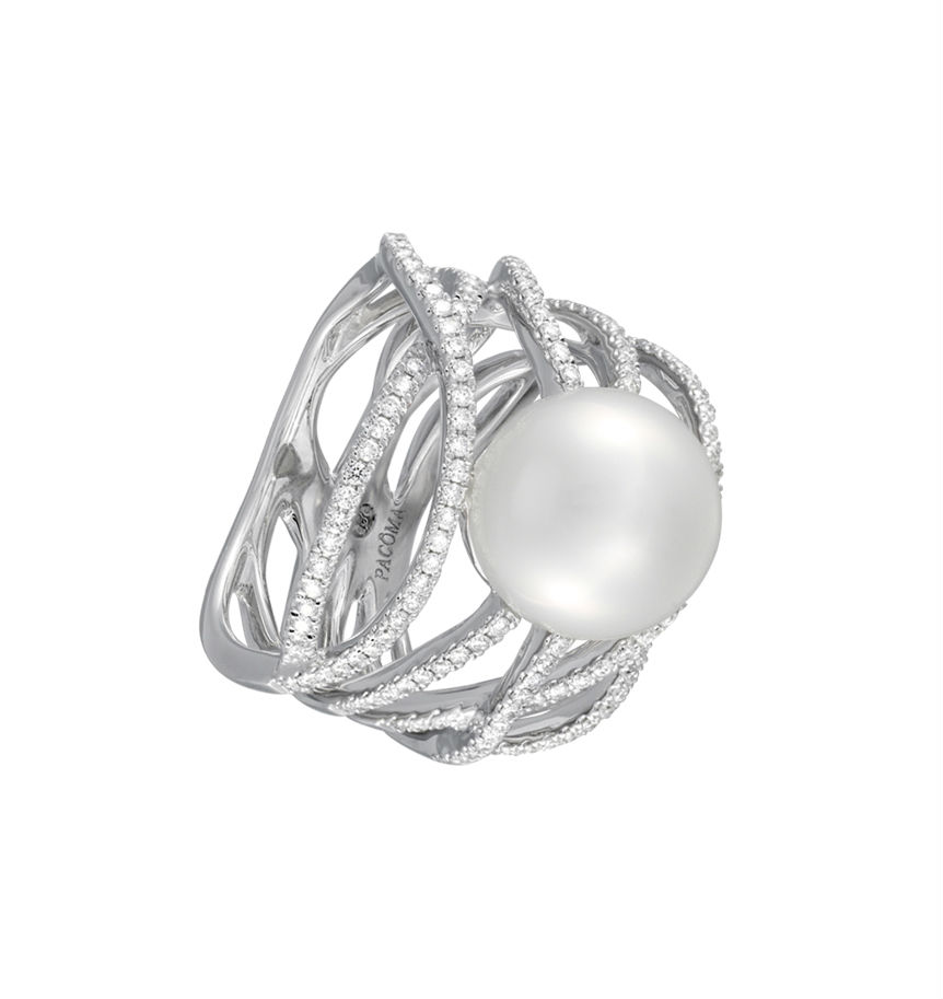 White gold ring, 10/11mm Australian South seas pearl, 163 diamonds 0.68 ct