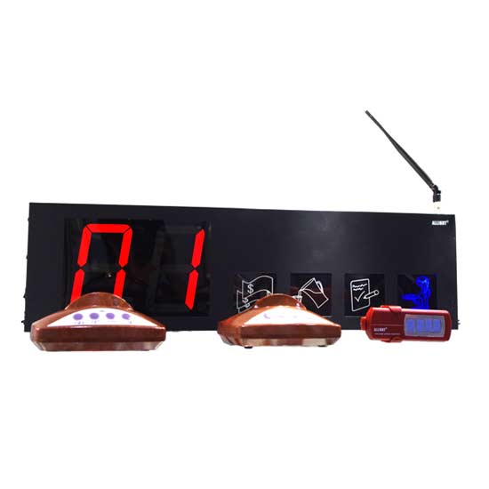 This wireless calling system comes with HC and HE transmitters. The remote control included is sensitive and responsive. This system is especially suitable for restaurants and hotels.