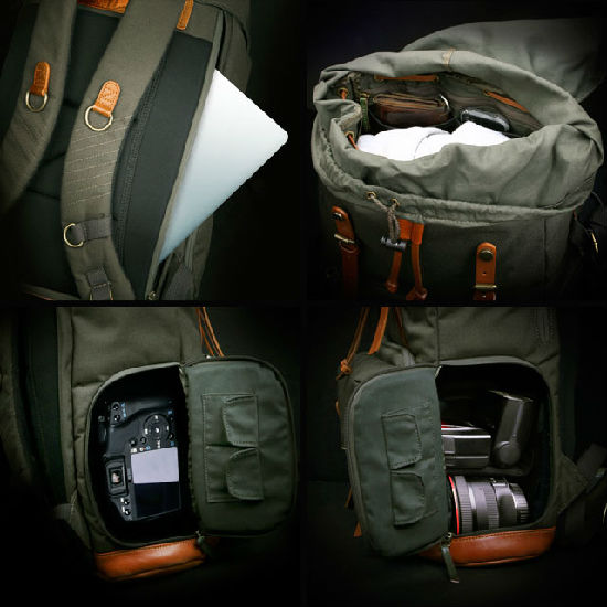 This fully functional camera backpack especially designed for professional or armature photographers. Other than your DSLR with mid-range zoom lens attached, you may also fit up to 2 extra lens or flash units into the lower compartments of the backpack. The backpack is crafted of waterproof nylon and the built-in waterproof nylon cover gives extra protection of your gadgets